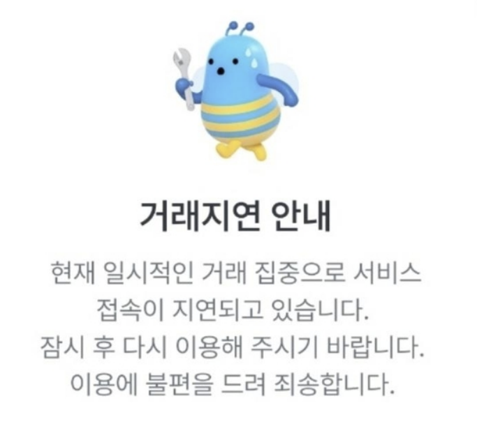 우리은행 측은 앱 내 공지를 통해 “일시적인 거래 집중으로 서비스 접속이 지연되고 있다”고 안내했다.