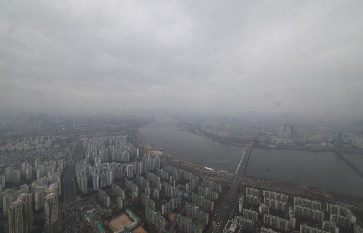 미세먼지에 중국발 황사까지 유입된 12일 오후 서울 시내가 뿌옇게 보이고 있다. 전날 고비사막과 내몽골고원에서 발원한 황사가 북서풍을 타고 유입되며 서해5도와 경기 서해안부터 영향을 받아 황사는 밤사이 전국으로 확산하겠다.