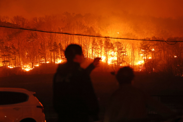 산림당국은 이날 진화 헬기 77대를 비롯해 진화 인력 3708명과 진화 차량 530대 등 가용 가능한 진화 자원을 모두 동원해 주불 잡기에 주력했다.