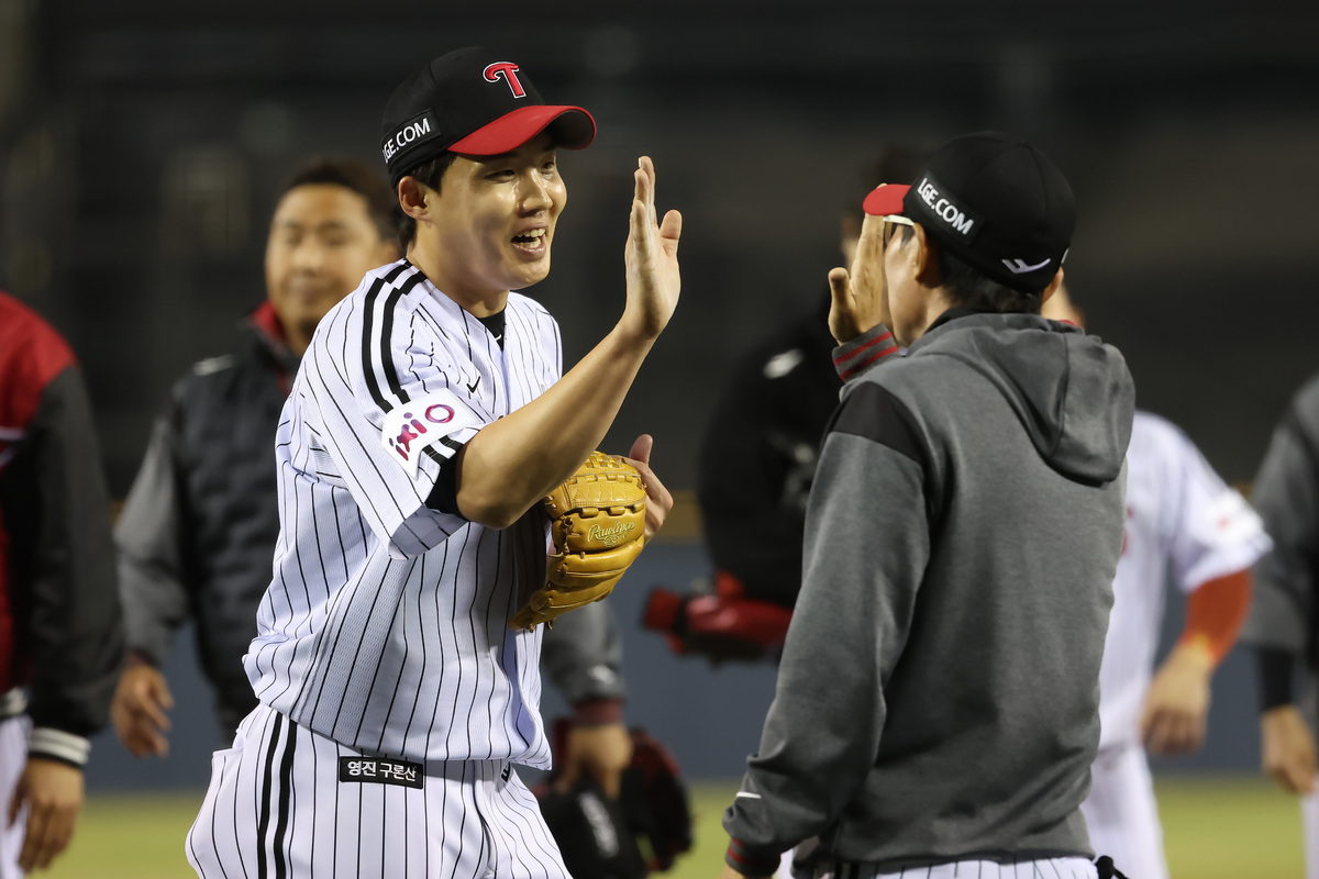 ‘화룡점정’은 임찬규였다. 한화와의 주중 3연전 두 번째 경기에서 생애 첫 완봉승을 거뒀다. 공 100개를 던져 실점 없이 홀로 경기를 전부 책임지며 데뷔 15년 만에 완봉승을 거둔 것이다.