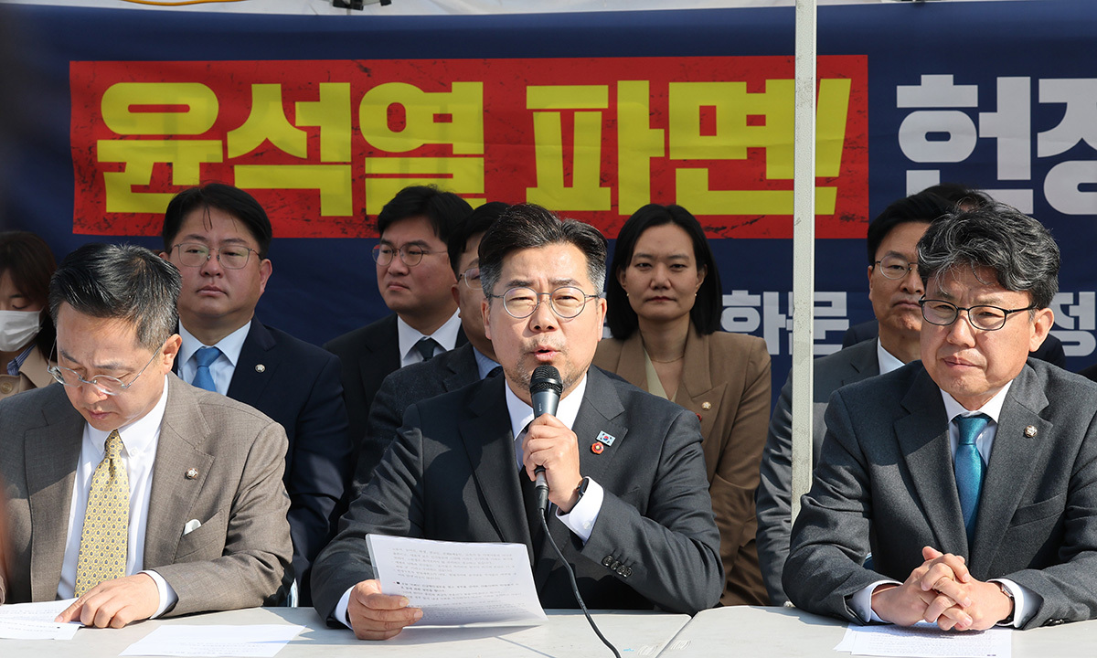 더불어민주당 박찬대 원내대표는 서울 광화문 천막당사에서 주재한 당 회의에서 “내일(4일)이면 내란 수괴 윤석열은 파면될 것”이라며 “내란 수괴 윤석열 파면을 입증할 증거들은 이미 차고 넘친다. 비상계엄 선포, (계엄) 포고령 1호, 무장군대를 동원한 국회와 중앙선거관리위원회 침탈, 정치인과 법조인 체포 지시 등이 모두 확실한 파면 사유”라고 말했다.