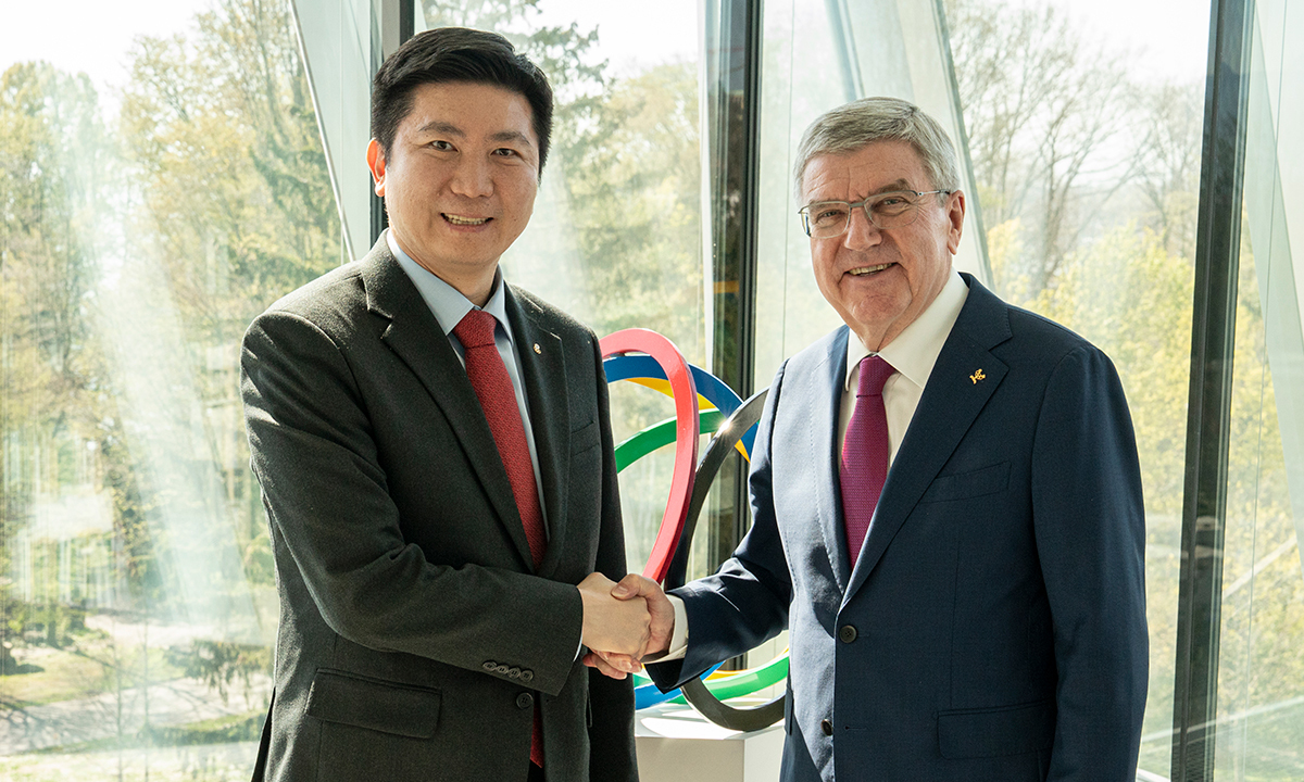 유 회장은 9일(한국시간) 스위스 로잔 IOC 본부를 방문해 바흐 위원장과 면담했다. 김관영 전북특별자치도지사와 명수현 문화체육관광부 국제체육과장이 동석했다.
