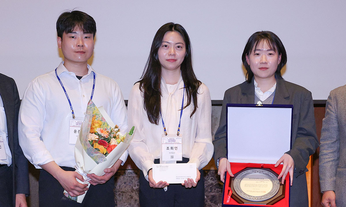 17일 서울 중구 롯데호텔 서울에서 열린 대한신경정신의학회 춘계학술대회 ‘2024 정신건강 언론인 상 시상식’에서 수상한 세계일보 윤준호·조희연·김나현 기자(왼쪽부터)가 기념 촬영을 하고 있다.