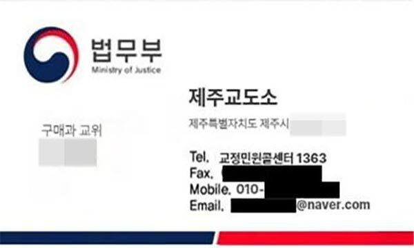 제주교도소 측은 “최근 교정공무원 사칭 사기가 업종을 가리지 않고 전국적으로 확산하고 있다”며 “제주교도소는 추가 피해 사례가 발생하지 않도록 노력하고 있다”고 말했다.