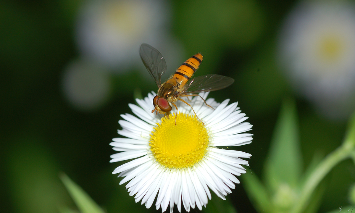 한편, 이른 봄에서부터 늦가을까지 우리 주변에서 흔히 볼 수 있는 ‘호리꽃등에’는 우리나라에서 가장 흔한 꽃등에로, 이름에서 알 수 있듯 이 작은 크기에 가늘고 긴 배를 가지고 있다. 주로 노란색과 붉은색이 어우러진 색깔과 모양으로 인해 벌로 오해받기도 하지만 천적으로부터 공격을 피하려는 생존 전략일 뿐 벌의 침과 같은 무기는 가지고 있지 않다.