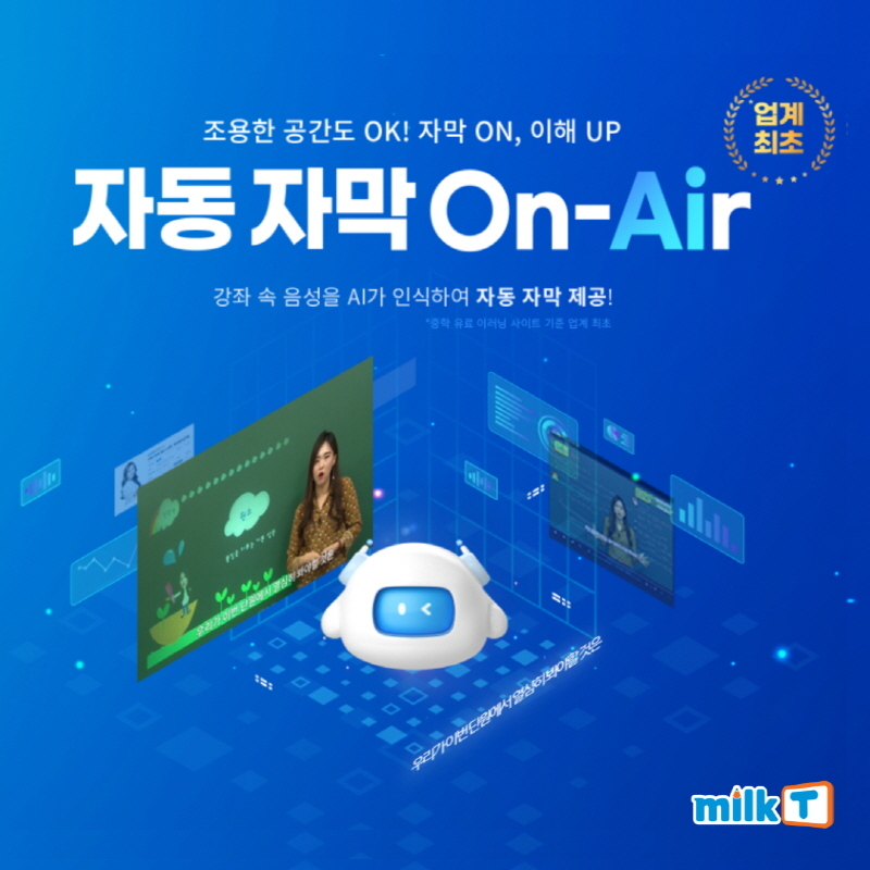 천재교육 관계사 천재교과서가 만든 중등인강 밀크티중학은 AI 음성인식 기술을 기반으로 한 ‘자동 자막 On-Air’ 서비스를 운영 중이다. 강좌 속 음성을 AI가 실시간으로 인식하여 자동으로 자막을 제공한다.