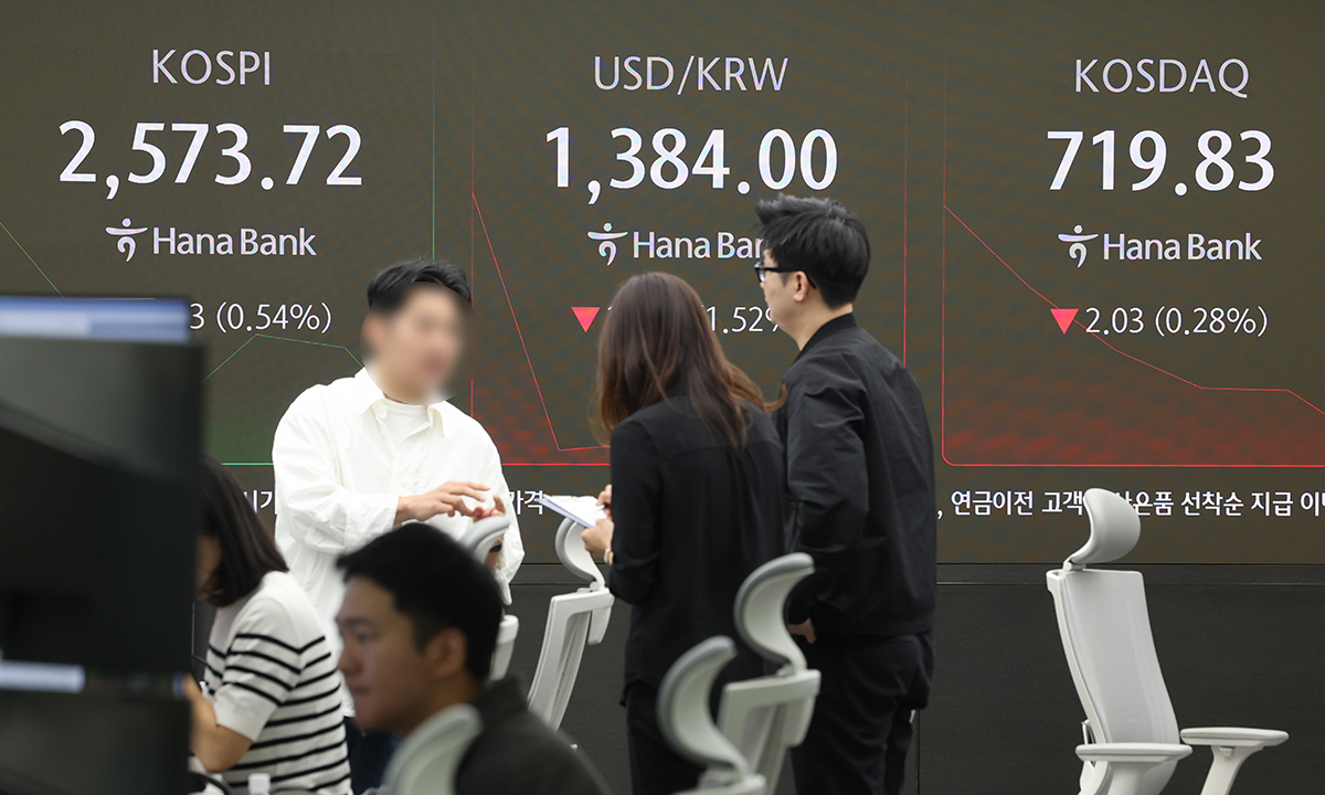 7일 서울 중구 하나은행 딜링룸 현황판에 코스피·코스닥 지수, 원/달러 환율 등이 표시되고 있다. 연합뉴스