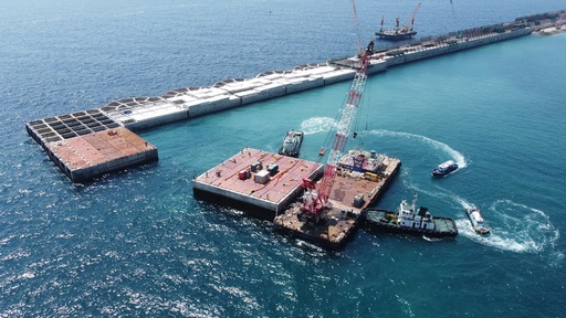 울릉공항을 건설하고 있는 DL이앤씨는 마지막 ‘케이슨’ 설치작업을 완료했다고 8일 밝혔다. 케이슨은 바다에 가라앉혀 항만 안벽이나 방파제 등으로 사용되는 대형 콘크리트 구조물이다. 울릉도에는 1200m 길이 활주로가 들어설 평지가 없어 바다를 메워 공항을 만들고 있는데, DL이앤씨는 케이슨으로 바닷물을 막은 다음 그 안쪽을 메우는 ‘케이슨 공법’을 활용하고 있다. 국내에서 케이슨 공법을 공항 건설에 적용한 건 DL이앤씨가 처음이다. DL이앤씨는 “30함의 케이슨이 모두 설치되면서 공항 활주로의 초석이 완성됐다”며 “첫 번째 케이슨을 설치한 2022년 5월 이후 약 3년만”이라고 설명했다.