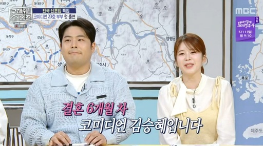 '고백은 누가 먼저 했느냐'는 질문에 김해준은 "선배님들 앞에서 이런 말 하기가 좀 그렇다. 살려달라"며 난처해하다 "승혜 씨가 이상형을 이야기했는데 가만히 들어보니까 나 같더라. 그래서 내가 먼저 고백했다"고 말해 웃음을 안겼다.