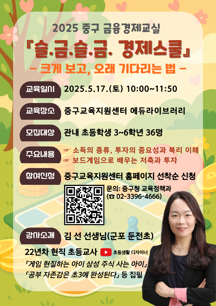 서울 중구가 관내 초등학교 3~6학년을 대상으로 주말 특강 ‘슬금슬금 경제스쿨’을 개최한다.
