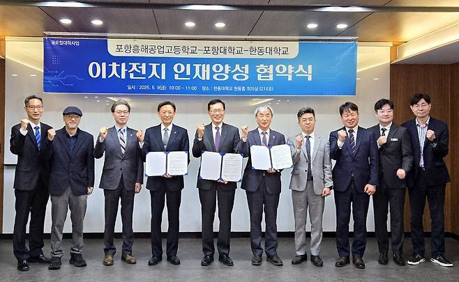 경북 포항흥해공업고등학교와 포항대학교, 한동대학교는 지역 정주형 2차전지 심화인력 양성의 기틀을 마련하는데 힘을 한데 모으기로 했다.