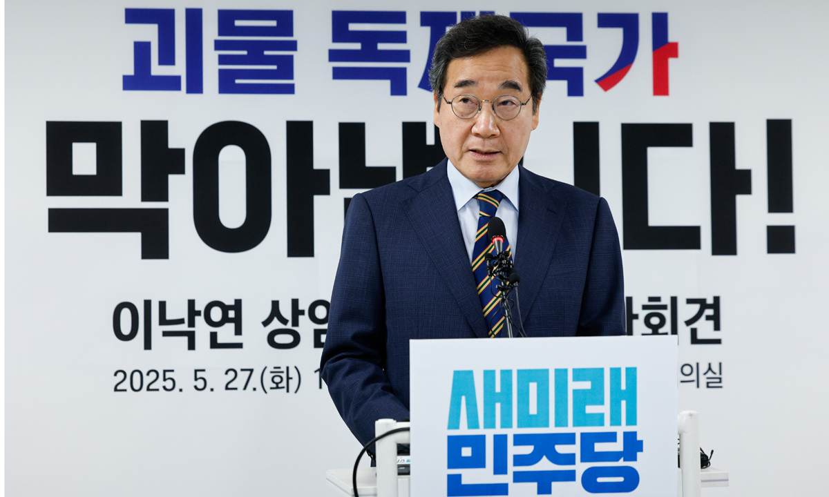 새미래민주당 이낙연 상임고문은 27일 "국민의힘 김문수 후보와 괴물 독재국가 출현을 막고 새로운 희망의 제7 공화국을 준비하는 데 협력하자는데 원칙적으로 합의했다"며 김 후보 지지를 선언했다.