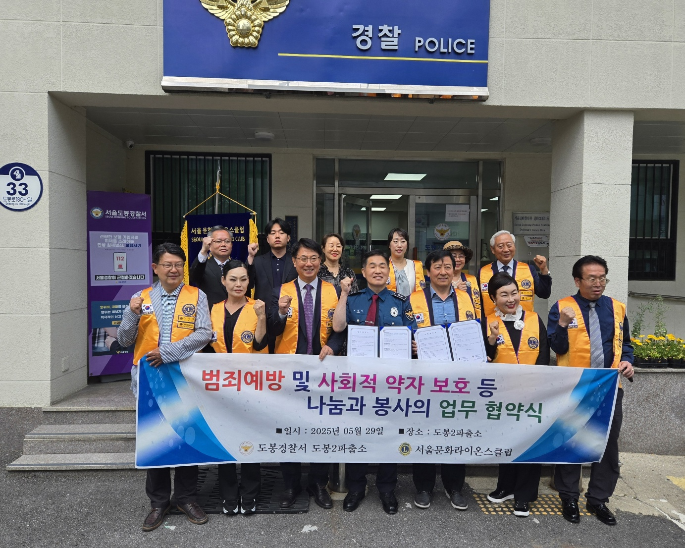 서울 도봉경찰서는 29일 도봉2파출소와 서울문화라이온스클럽이 정기적인 공동체 치안활동을 골자로 한 업무협약을 체결했다고 밝혔다.