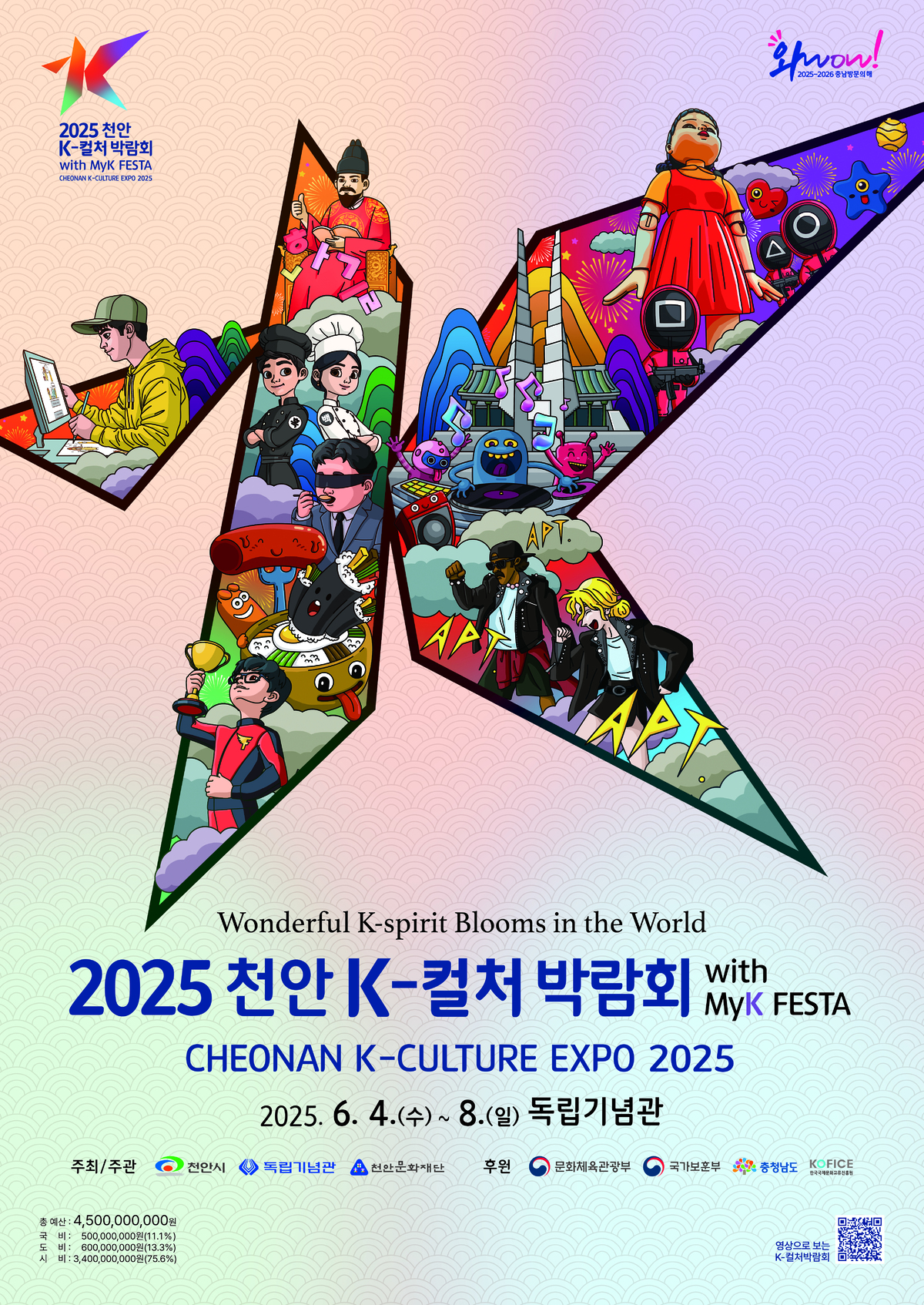 천안시·독립기념관·천안문화재단이 주최·주관하는 ‘2025 천안 K-컬처박람회 위드 마이 케이페스타(with MyK FESTA)’는 K-팝부터 음식·화장품·게임 등 한류문화 콘텐츠를 다각도로 조명한다.