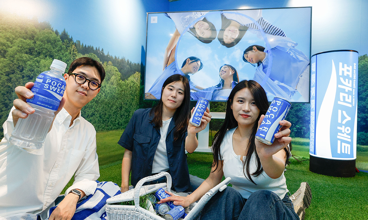 17일 포카리스웨트 상품모델로 활동하는 아일릿의 미니 3집 ‘bomb’ 발매 기념 팝업 스토어에서 모델들이 음료를 손에 들고 포즈를 취하고 있다. 동아오츠카는 아일릿과 협업을 통해 포카리스웨트존을 꾸며 팬들이 직접 체험할 수 있는 피크닉존, 촬영존을 운영하고 있다. 포카리스웨트와 아일릿의 협업 스티커 및 포카리스웨트 키링을 증정하는 이벤트도 진행한다.
