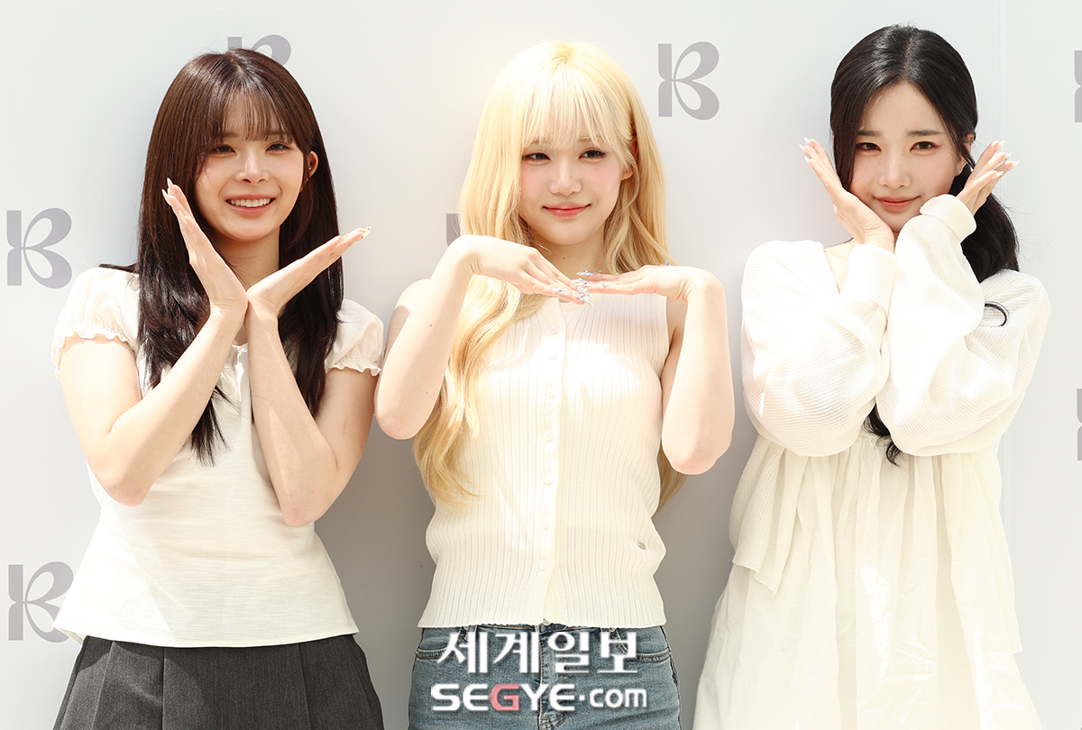 그룹 트리플에스 코토네, 윤서연, 김유연(사진 왼쪽부터)이 19일 서울 성수동에서 베이델리(BEIDELLI) 플래그십 스토어에서 열린 오프닝 포토콜 행사에 참석해 포즈를 취하고 있다.