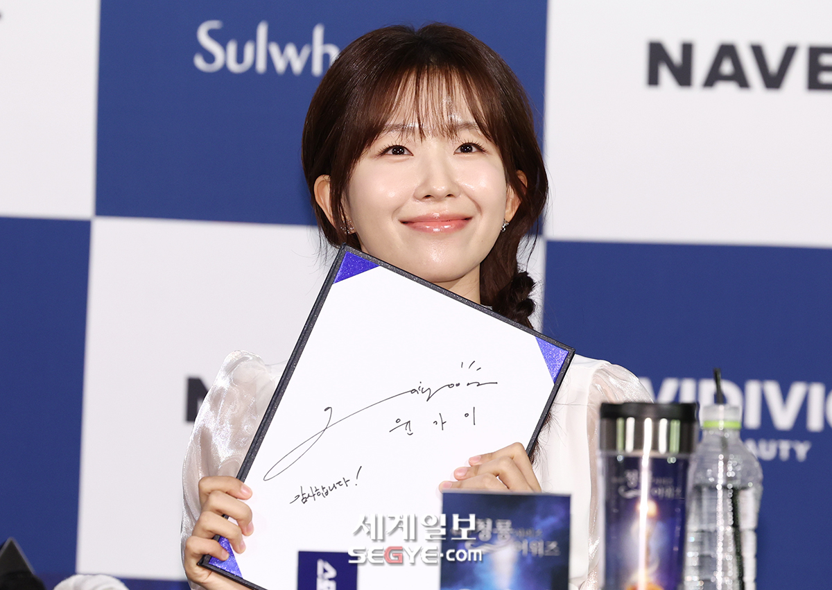 배우 윤가이가 25일 서울 여의도CGV에서 열린 제4회 청룡시리즈어워즈 핸드프린팅 행사에 참석해 대화를 나누고 있다.