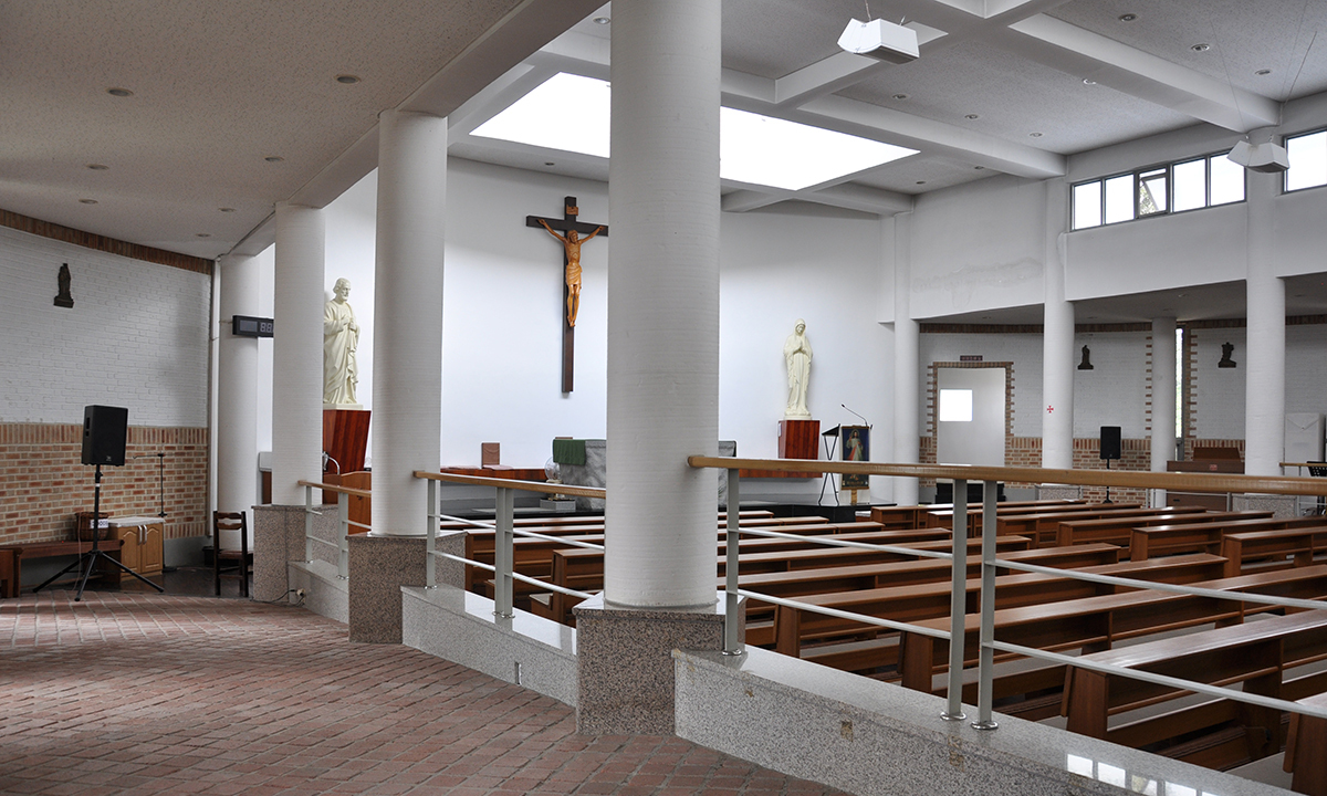 본당 안에서 신자들을 가장 먼저 맞이하는 건 사각형 프레임이다. 본당의 규모가 작은데도 프레임을 배치한 이유를 짐작해 봤다. 건축가는 전례를 위해 사제가 프레임을 통과해 신자들 사이를 지나 제단으로 향하는 ‘사제의 길’과 신자들이 본당 양쪽으로 돌아서 내려가 하나님을 만나는 ‘신자의 길’을 나누려고 했던 건 아닐까.