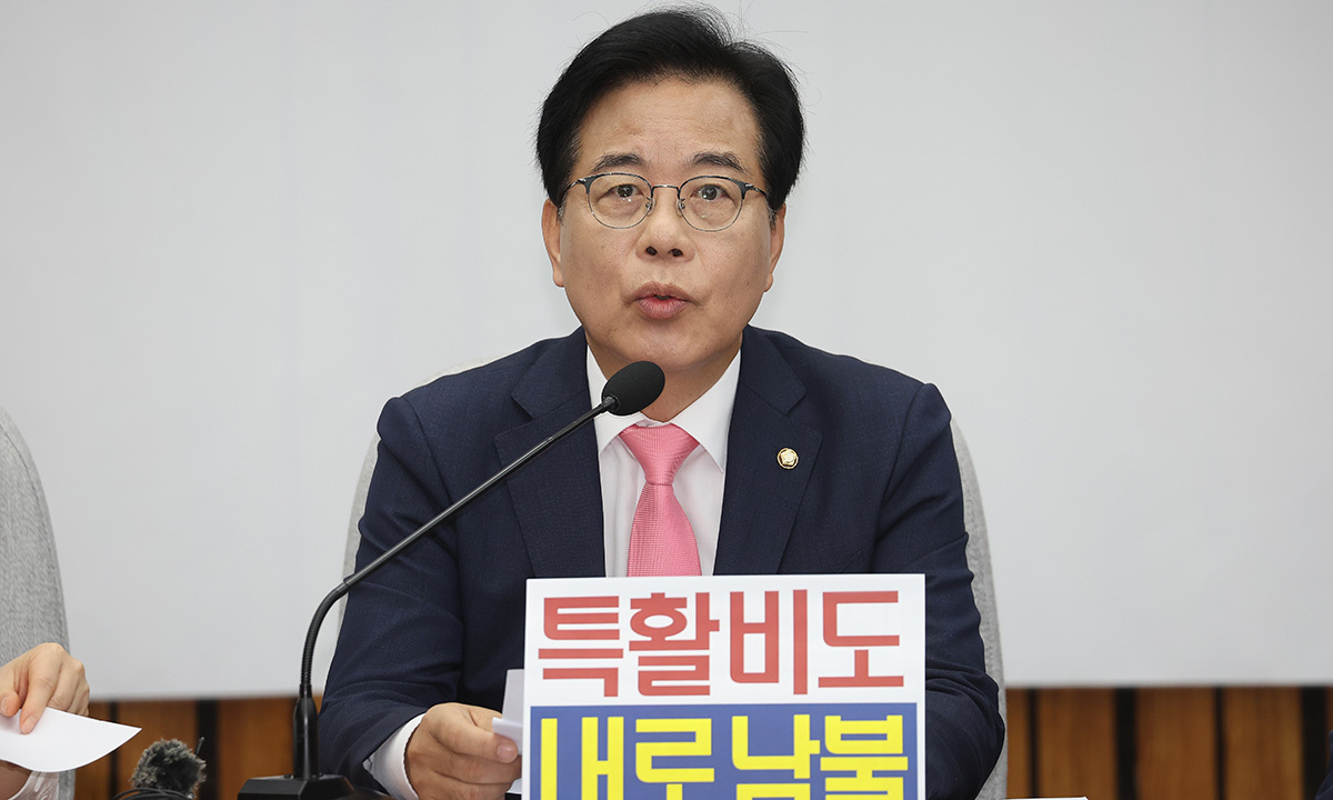 국민의힘 송언석 비상대책위원장 겸 원내대표는 4일 추경 협상 과정에서 더불어민주당이 야당 시절 전액 삭감했던 대통령실 특수활동비의 증액을 추진하는 것에 대해 "너무나도 후안무치하고 내로남불(내가 하면 로맨스 남이 하면 불륜)한 얘기"라고 비판했다.