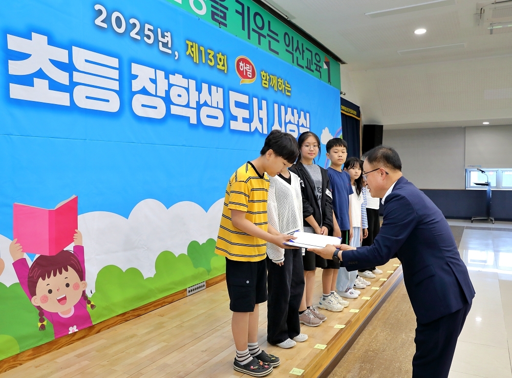 7일 하림은 지난 4일 전북특별자치도 익산교육지원청에서 ‘제13회 하림과 함께하는 초등장학생 도서 시상식’을 열고, 학생 75명에게 장학증서와 도서 전집을 전달했다고 밝혔다.