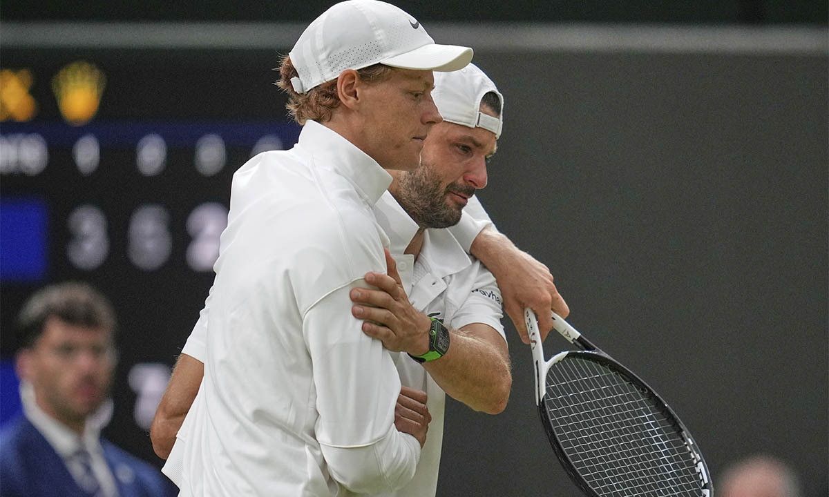 신네르는 이날 1세트 첫 게임에서 넘어지면서 오른쪽 팔꿈치를 다쳐 이후 고전을 면치 못했다. 4대 메이저 대회 가운데 유독 윔블던에서만 단식 결승에 오른 적이 없을 정도로 잔디 코트에서는 약점을 보이고 있는 신네르의 탈락 가능성이 커지던 3세트에서 뜻밖에 디미트로프의 부상이 승패를 갈랐다. 단식 4강이 자신의 메이저 대회 최고 성적인 디미트로프가 오른쪽 가슴 통증을 호소하더니 결국 경기를 포기했다. 디미트로프는 지난해 윔블던부터 올해 윔블던까지 최근 5차례 메이저 대회에서 모두 경기 도중 부상으로 기권패 했다.