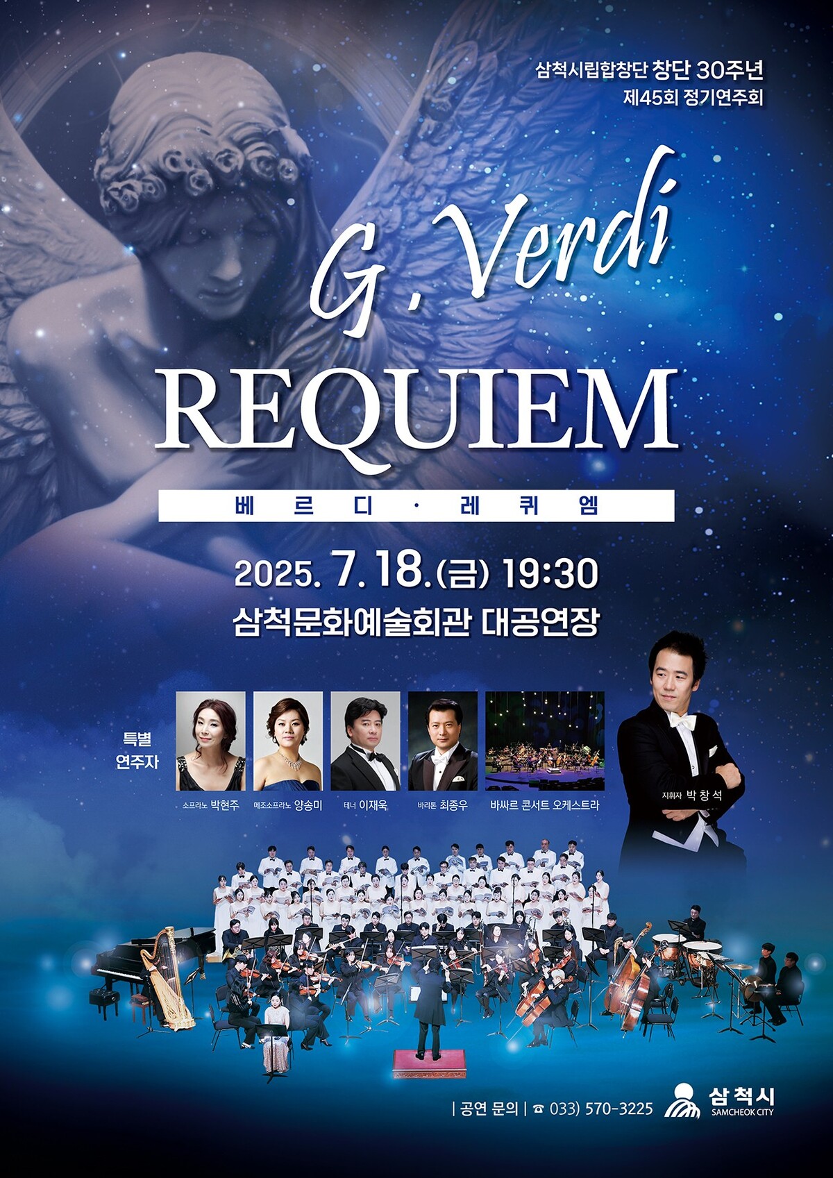이번 정기연주회는 이탈리아 대표 작곡가 주세페 베르디(G. Verdi)의 명곡 ‘레퀴엠(Messa da Requiem)’을 통해 삼척시립합창단 30년 음악 여정을 되돌아보며 깊은 감동을 선사할 예정이다.