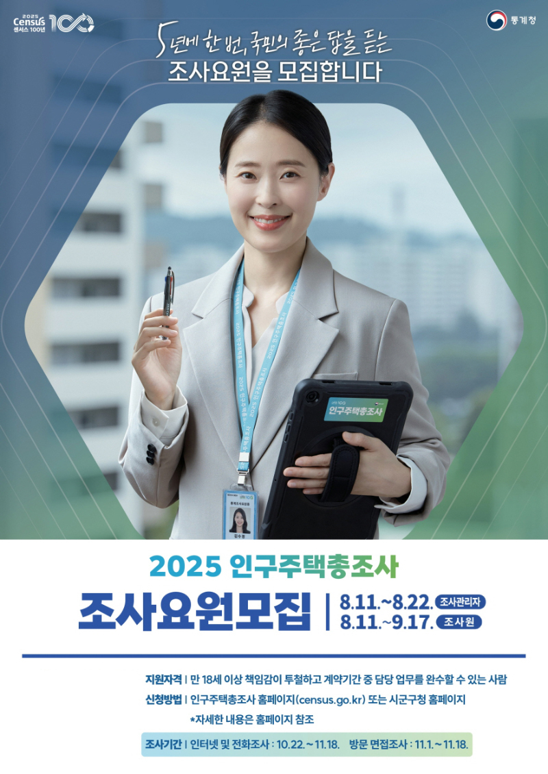 모집은 이달 11일부터 시작되며 조사관리자는 8월 22일까지, 조사원은 9월 17일까지 접수받는다.