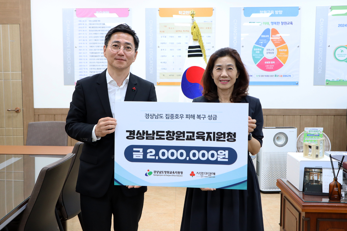 11일 경남사회복지공동모금회(모금회)에 따르면 창원교육지원청 청렴‧봉사 동아리 ‘진달래회’가 최근 집중호우로 피해를 입은 도내 이재민을 돕기 위해 성금 200만원을 기탁했다.