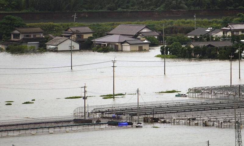 11일 일본 서쪽 규슈 지역에 기록적인 양의 비가 내려 구마모토현에서는 한동안 최고 수준의 대피령이 내려졌다.