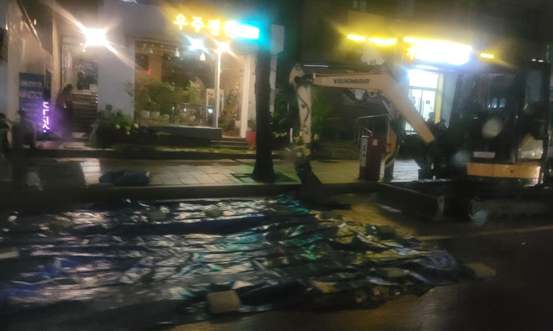 종로구는 이날 오전부터 폭우가 쏟아지면서 하수관이 역류해 포트홀이 발생한 것으로 보고 있다.