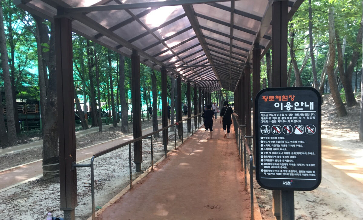 용허리근린공원 인근에 위치한 맨발 흙길은 기존 편도형에서 순환형으로 재정비하고, 일반 산책로와 분리된 전용 노선으로 구성했다. 더불어 맨발길 주변에는 황토 체험길을 새롭게 마련해 주민들이 취향에 맞는 코스를 선택할 수 있도록 했다. 이와 함께 황토볼 체험장·지압장·세족장 등 편의·체험시설도 확충, 서초구 최대 규모의 대표 맨발 체험 공간으로 거듭났다.