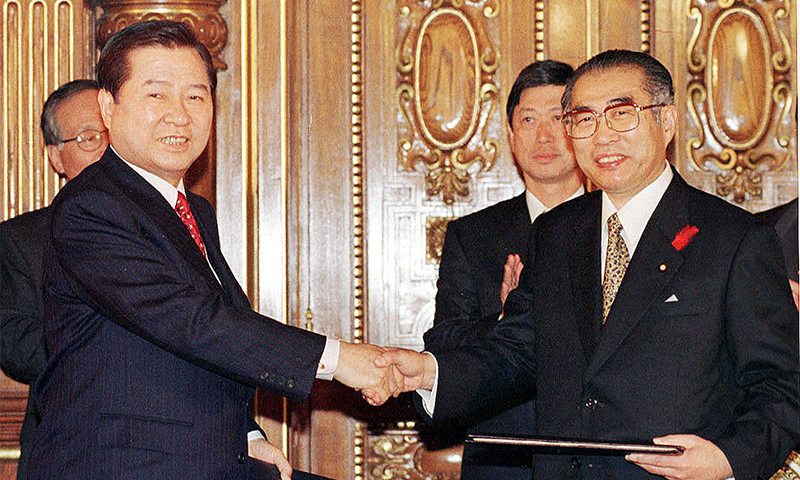 김대중 전 대통령은 1998년 10월 일본을 국빈 방문해 오부치 게이조 일본 총리와 11개 항의 ‘21세기의 새로운 한일 파트너십 공동선언’에 합의했다. 양국이 확고한 선린 우호협력관계를 구축하려면 과거 직시와 상호 이해·신뢰에 기초한 관계 발전이 중요하다는 내용이 담겼다. 23일 한·일 정상회담 이후 채택된 ‘공동언론발표문’에서 이시바 시게루 일본 총리가 역대 내각 입장 계승을 표명하며 언급한 공동선언이 바로 이 ‘김대중·오부치 선언’(사진)이다. 오부치 전 총리는 이 선언 2항에서 “일본이 과거 한때 식민지 지배로 인해 한국 국민에게 다대한 손해와 고통을 안겨주었다는 역사적 사실을 겸허히 받아들이며 이에 대해 통절한 반성과 마음으로부터의 사죄를 했다”고 밝혔다. 이 선언 합의 당시 한·일은 연 1회 이상 정상회담 실시, 대북정책 공조 등 행동계획도 함께 채택했다.