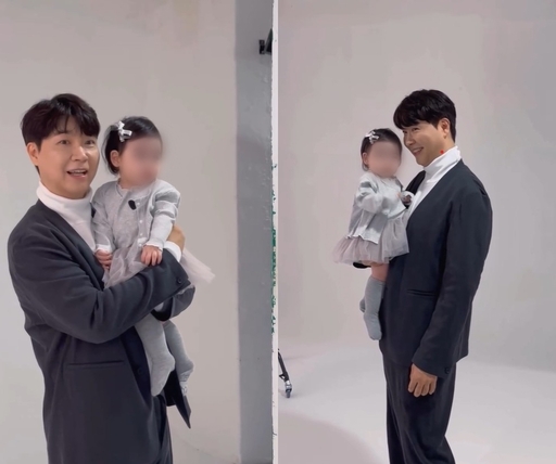 박수홍은 재이 양을 안고 미소지으며 여러 포즈를 취했다.