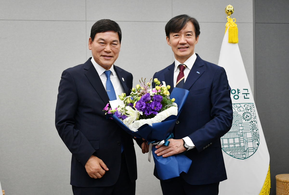 정철원 전남 담양군수는 27일 담양군청을 방문한 조국 조국혁신당 혁신정책연구원장과 만나 지역 현안을 논의하고 당 차원의 협력을 요청했다.