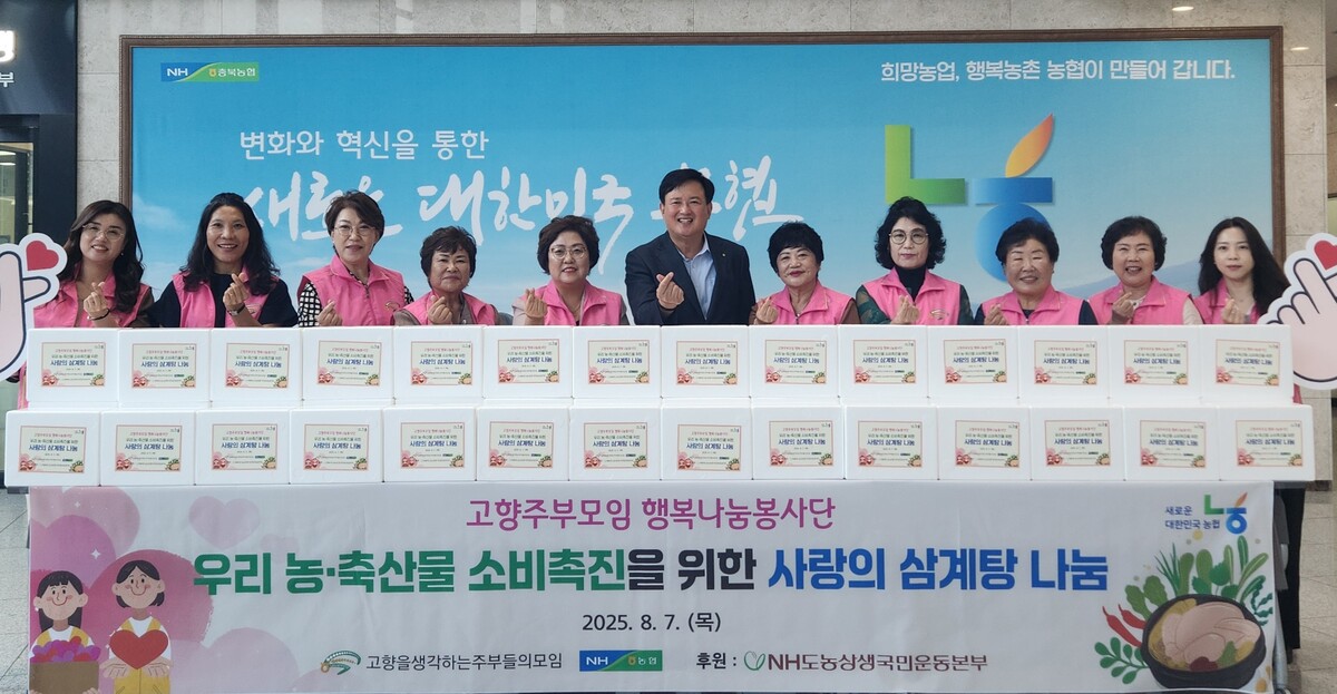 김연숙 고향주부모임 회장은 “삼계탕 한 그릇에 담긴 정성이 어려운 이웃들에게 작은 힘이 되길 바란다”며 “앞으로도 농축산물 소비촉진과 나눔활동을 꾸준히 이어가겠다”고 밝혔다.