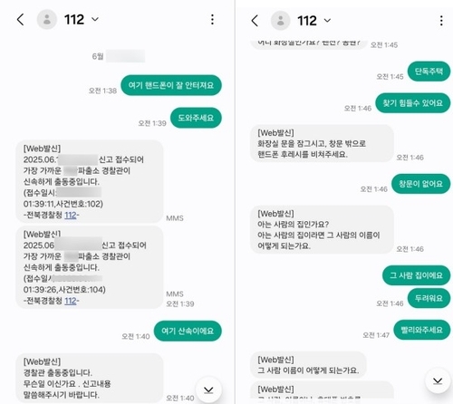당시 경찰관은 피해자 위치를 찾기 위해 주택의 특징 등을 물어보다가 "화장실 문을 잠그고 창문 밖으로 휴대전화를 비쳐달라"고 했지만, B씨는 "창문이 없다"면서 "두려우니 빨리 와달라"고 요청했다.