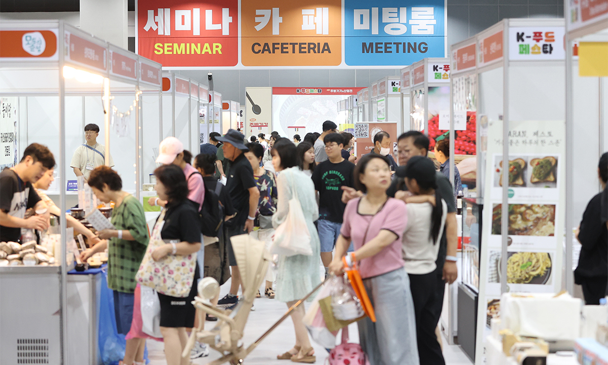 31일 서울 강서구 코엑스마곡에서 열린 ‘K푸드페스타 2025’에서 관람객들이 전시장을 둘러보고 있다.