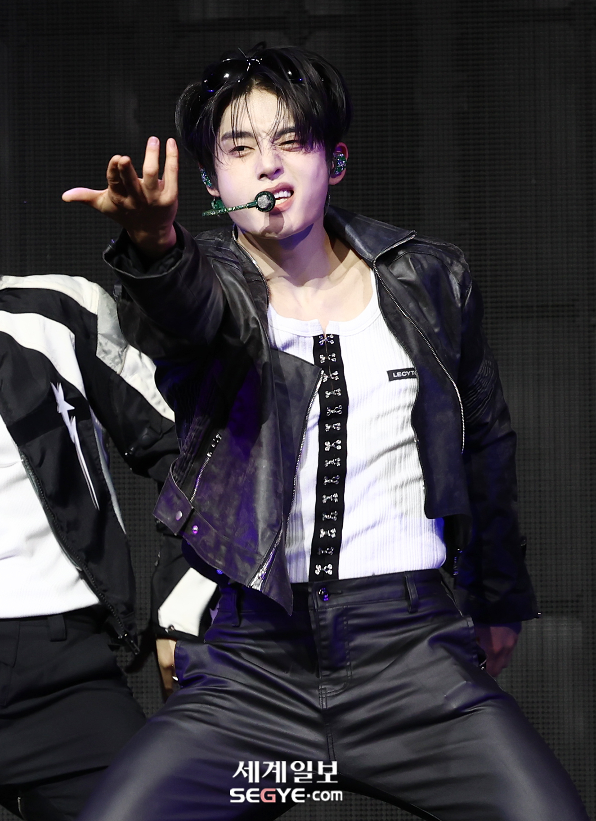그룹 제로베이스원 김지웅이 1일 오후 서울 용산구 한남동 블루스퀘어에서 열린 정규 1집 '네버 세이 네버(NEVER SAY NEVER)' 발매 기념 쇼케이스에 참석해 열띤 공연을 펼치고 있다.