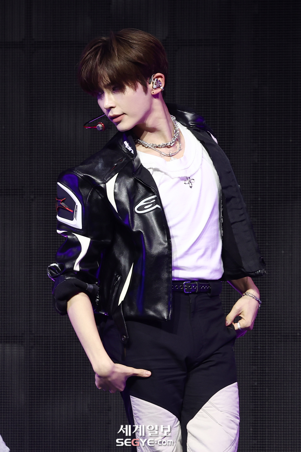 그룹 제로베이스원 성한빈이 1일 오후 서울 용산구 한남동 블루스퀘어에서 열린 정규 1집 '네버 세이 네버(NEVER SAY NEVER)' 발매 기념 쇼케이스에 참석해 열띤 공연을 펼치고 있다.