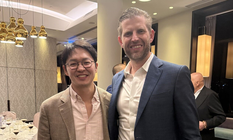 최 사장은 지난달 30일 자신의 소셜미디어(SNS) 채널에 에릭 트럼프와 함께 찍은 사진을 게시하고 그와 저녁을 함께 했다고 소개했다.