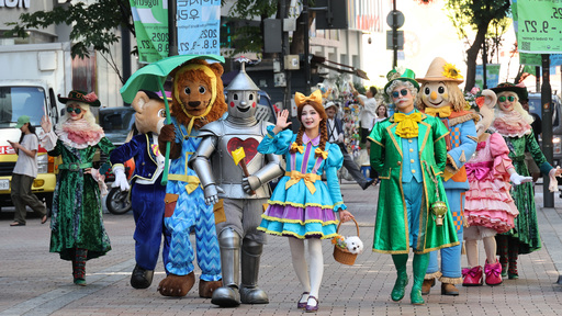 3일 서울 중구 명동거리에서 에버랜드 연기자들이 판타지 소설 오즈의 마법사 캐릭터 분장을 하고 행진하고 있다. 에버랜드는 오즈의 마법사를 테마로 한 가을 축제 ‘에버랜드 오브 오즈’를 오는 5일부터 11월16일까지 개최한다. 이번 축제에서는 밝고 즐거운 에메랄드 시티, 어둡고 오싹한 블러드 시티 등 다채로운 테마존을 경험할 수 있다.