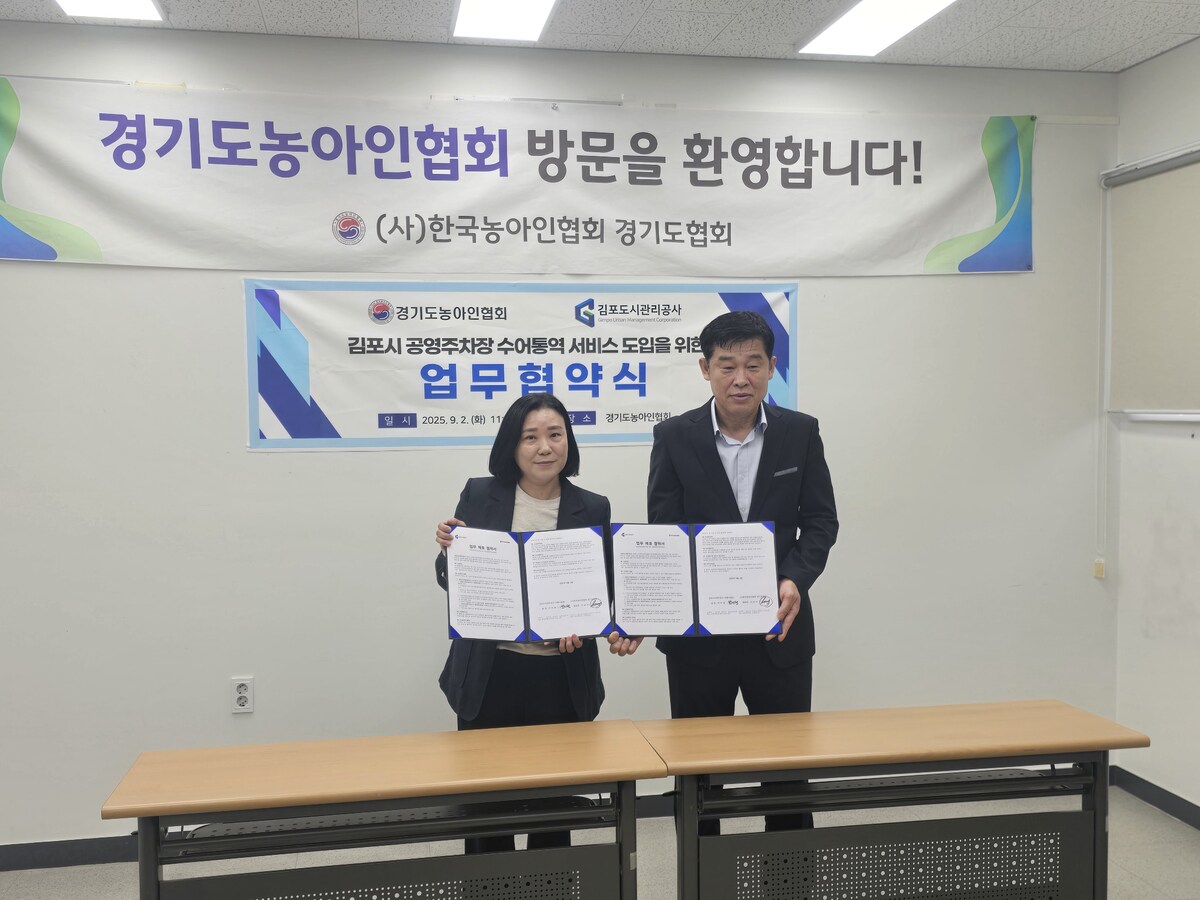 경기 김포도시관리공사가 관내 공영주차장에서 농인(청각·언어 장애인) 고객들의 소통 불편 해소에 나섰다. 바로 수어통역 서비스 도입을 통해서다. 공사는 경기도농아인협회와 이 같은 내용의 업무협약을 체결했다고 3일 밝혔다.