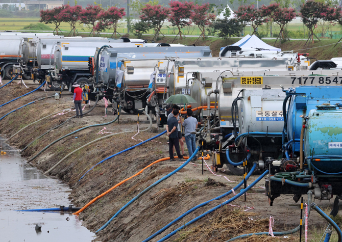 앞서 전날에도 비슷한 방식으로 3만t 가까운 물을 쏟아부었지만, 저수율 하락세는 좀처럼 꺾이지 않고 있다.