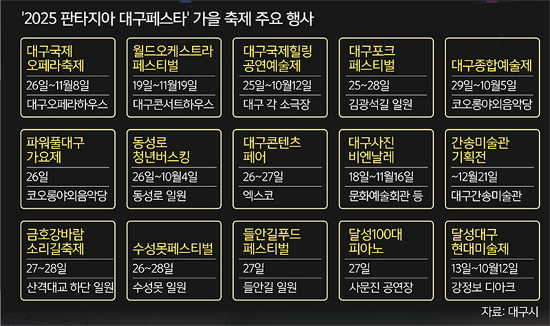 ‘2025 판타지아 대구페스타’가 올가을 7번째 시즌을 맞아 지역 대표 15개 축제를 모아 시민과 관광객을 찾는다.