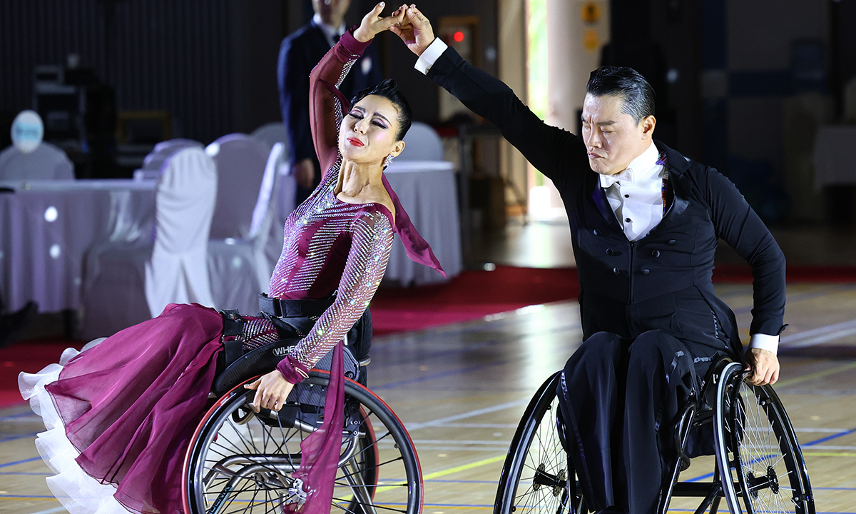 14일 서울 서초구 서초종합체육관에서 열린 ‘2025 서울시장배 전국장애인댄스스포츠 선수권대회’ 한 참가팀이 그간 갈고닦은 기량을 펼치고 있다. 제3차 국가대표 선발전을 겸한 이번 대회 선수부에는 지체장애인 선수와 비장애인 파트너로 구성된 35개팀이 출전해 라틴과 스탠더드 5종목에서 경기를 펼쳤다.