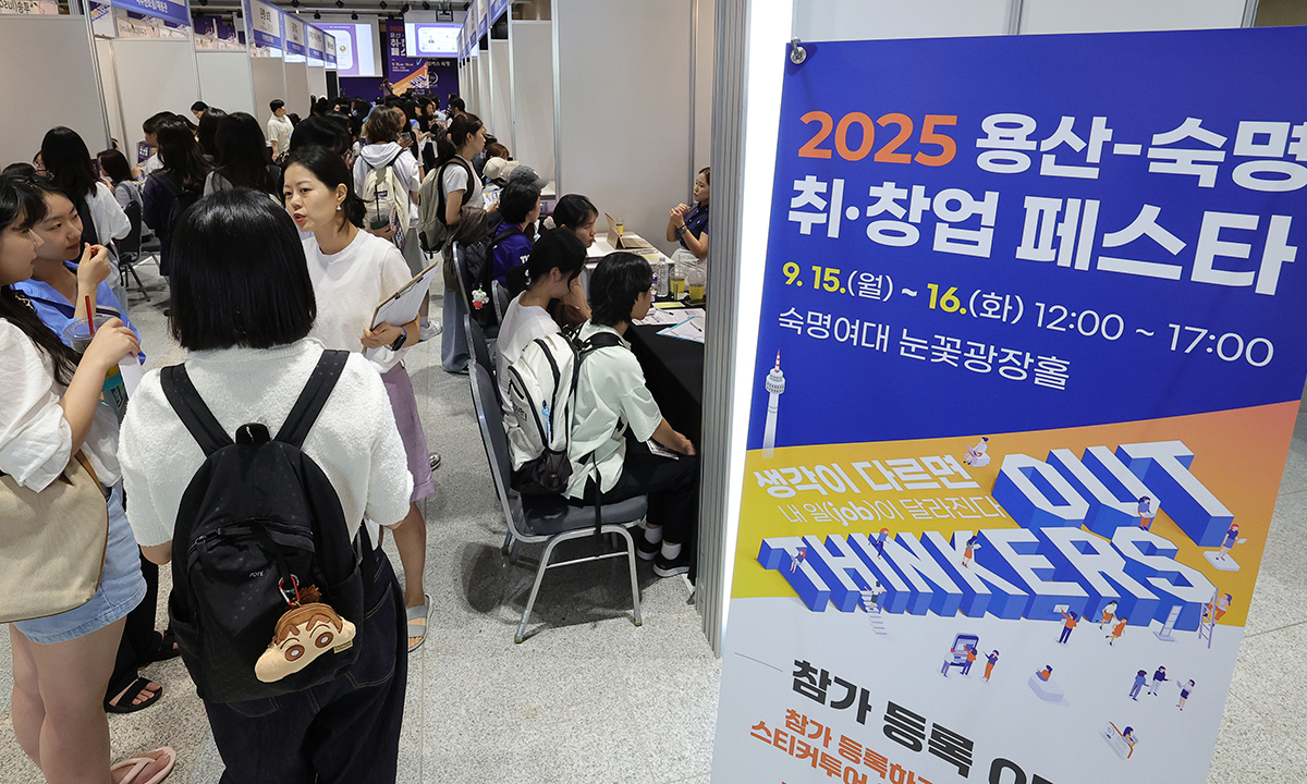 15일 서울 용산구 숙명여자대학교에서 열린 ‘용산-숙명 취·창업 페스타’를 찾은 학생들이 각 기업 채용 부스에서 취업상담을 받고 있다. 16일까지 계속되는 이번 페스타는 직무별·기업별 취업 멘토링과 30여개 기업 채용 상담 부스로 이뤄진 취업특별관과 20개 기업이 참여해 팝업스토어를 운영하며 혁신적인 제품을 선보이고 관람객이 직접 체험할 수 있는 스타트업특별관으로 구성됐다.