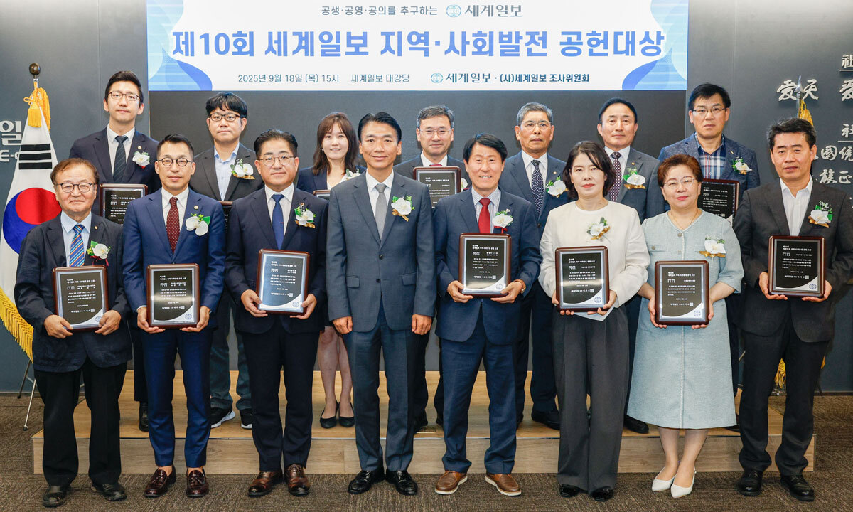 지역갈등 해소로 사회발전에 기여하고 평화통일의 초석을 놓는 데 앞장선 기관 및 개인을 독려하기 위한 ‘제10회 세계일보 지역·사회발전 공헌 대상’ 시상식이 18일 서울 용산구 세계일보 사옥에서 열렸다. 지역·사회발전 공헌 대상은 세계일보가 우리 사회에 팽배한 갈등과 대립, 집단이기주의를 넘어 공동체의 화합과 사회통합 노력을 진작하기 위해 세계일보가 주최하고 세계일보조사위원회가 후원하고 있다.