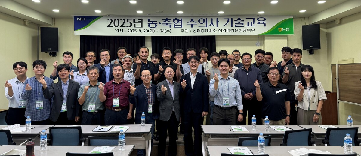 농협경제지주(축산경제대표이사 안병우)가 9월 23일부터 24일 양일 간 농협생명 수안보수련원에서 전국 농·축협 동물병원에 근무하는 수의사 40여명을 대상으로 ’농·축협 수의사 기술교육’을 실시했다.