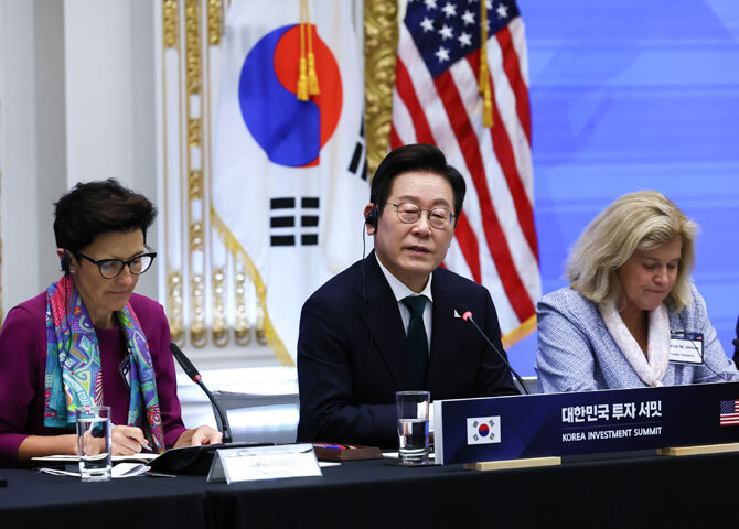 미국을 방문 중인 이재명 대통령은 25일(현지시간) "남북의 군사적 대치로 인한 불안정성 탓에 한국이 저평가되는 문제가 있다"며 "새 정부는 이런 지정학적 리스크를 확실히 해소하겠다"고 밝혔다.