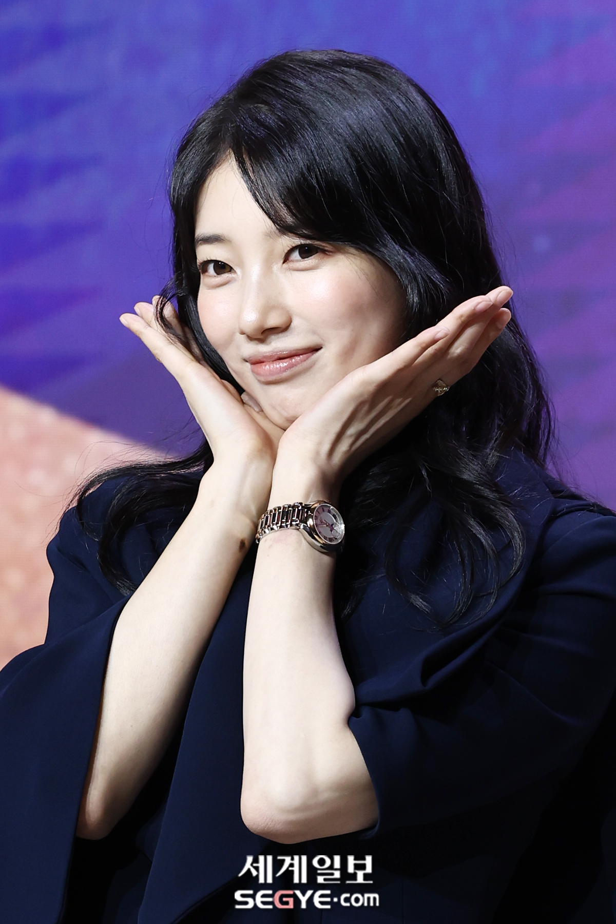배우 수지가 29일 조선 팰리스 서울 강남에서 열린 넷플릭스 시리즈 ‘다 이루어질지니’의 제작발표회에 참석해 포즈를 취하고 있다.